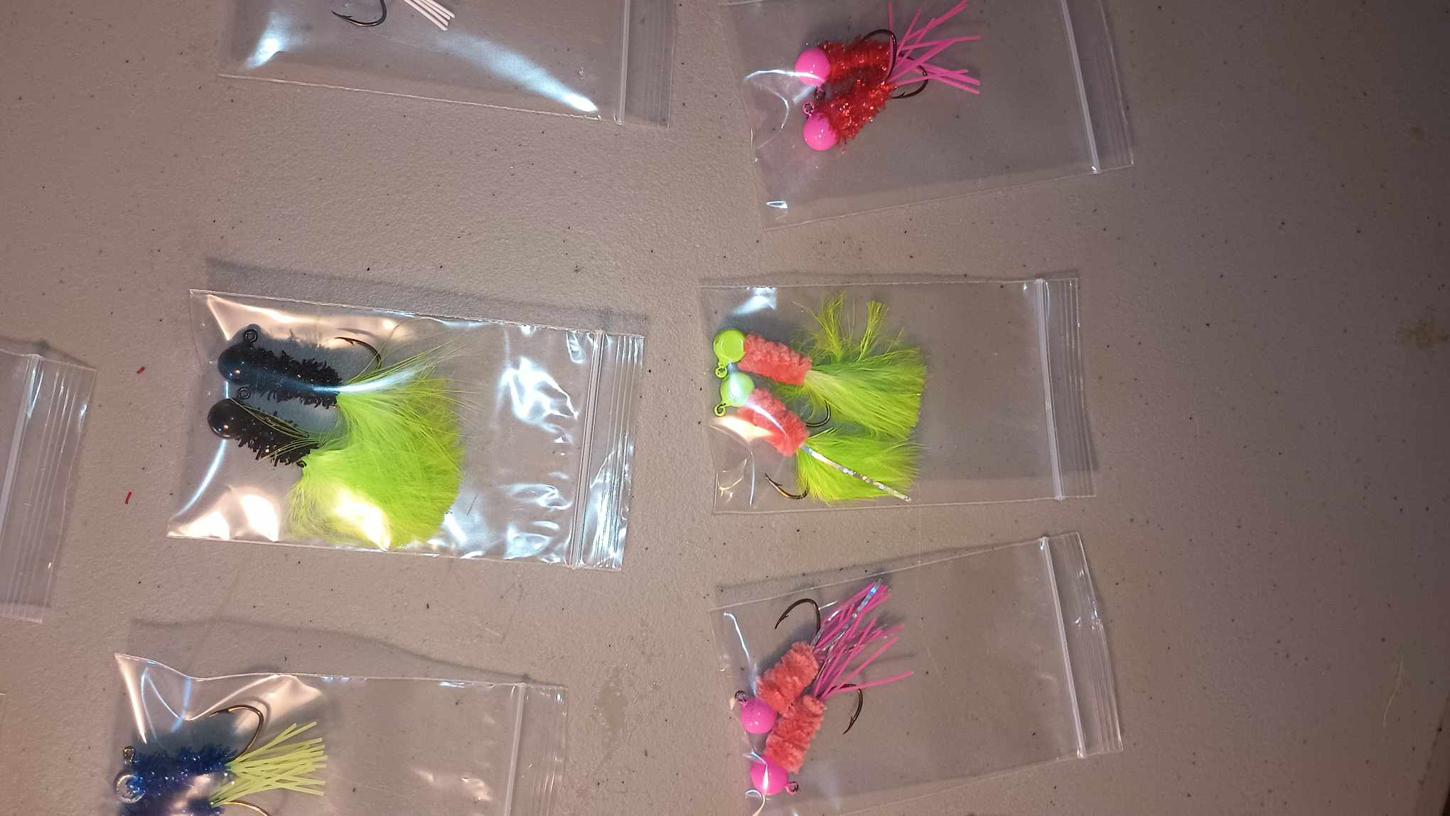 Marabou Jigs feature a lead round ball head design featuring a strong Mustad Sickle Hook (Sizes down below) with the body featuring a marabou feather for the tail.